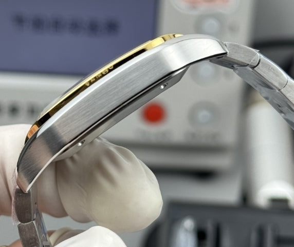The Cartier Santos with a yellow gold bezel exudes timeless elegance, blending classic design with luxurious sophistication. All watches are super clone and will come with the box, documents and carryon bag